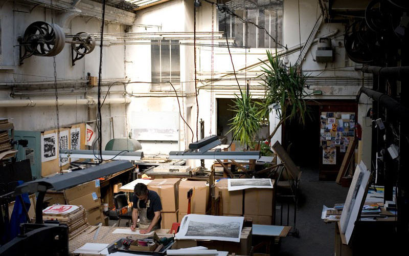 Idem is an art print shop in the Montparnasse district of Paris. It is a meeting point for great French and international artists who collaborate with Idem to create editions. A place of inspiration and creation in a vast 1,400 m2 workshop under glass roof. An exceptional stock of several tons of lithographic stones of all sizes is available to artists. Idem works in a collaborative approach with the artist to develop their images. The printers guide the artist through unusual territories, introducing him to a multitude of possibilities, suggesting innovative and experimental techniques. The work printed by Idem is present in museum collections, international exhibitions and private and public collections.